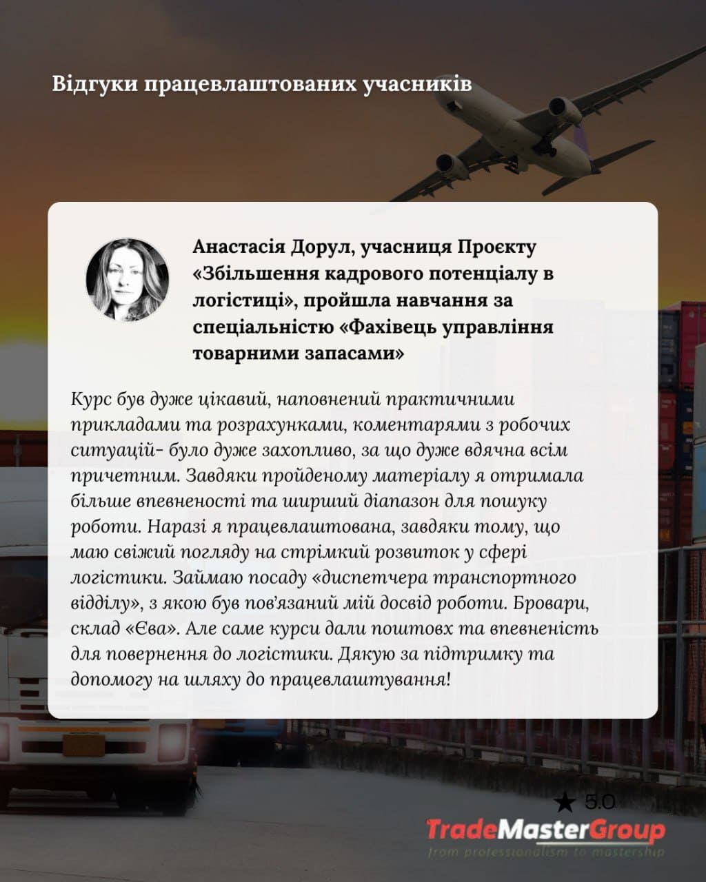 Проєкт «Збільшення кадрового потенціалу логістичного бізнесу» продовжує набір на другий етап — і це шанс не просто пройти навчання, а знайти стабільну роботу в логістиці.